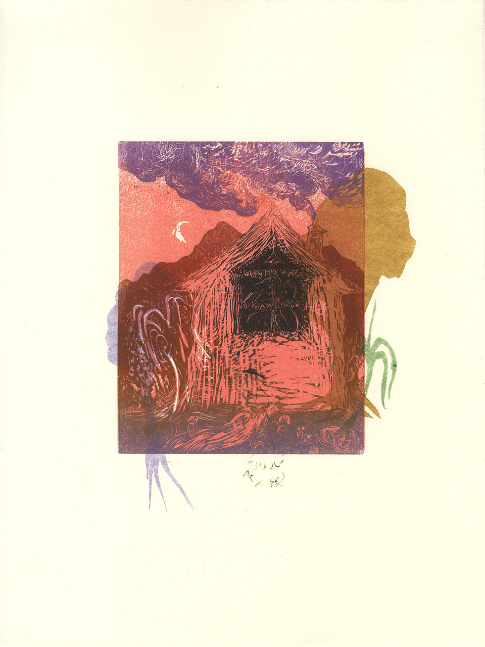 2024IMAGE SIZE - 18.5 x 15 cmPAPER SIZE - 38 x 28.5 cmMEDIUM - WoodcutEDITION SIZE - Variable Edition 10 of 16La Cabane des Musiciens, 10/16