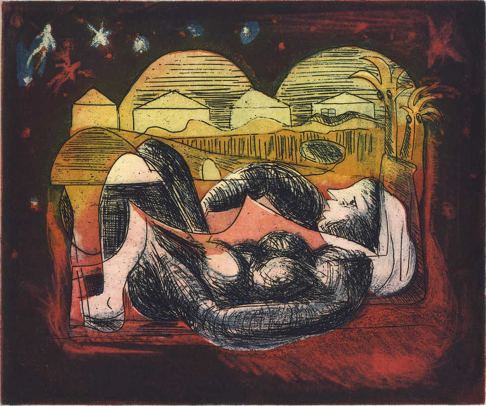2018IMAGE SIZE - 18 x 25 cmPAPER SIZE - 31 x 32.5 cmMEDIUM - Etching EDITION SIZE - Variable Edition 2 of 6La Nuit au Village, 2/6